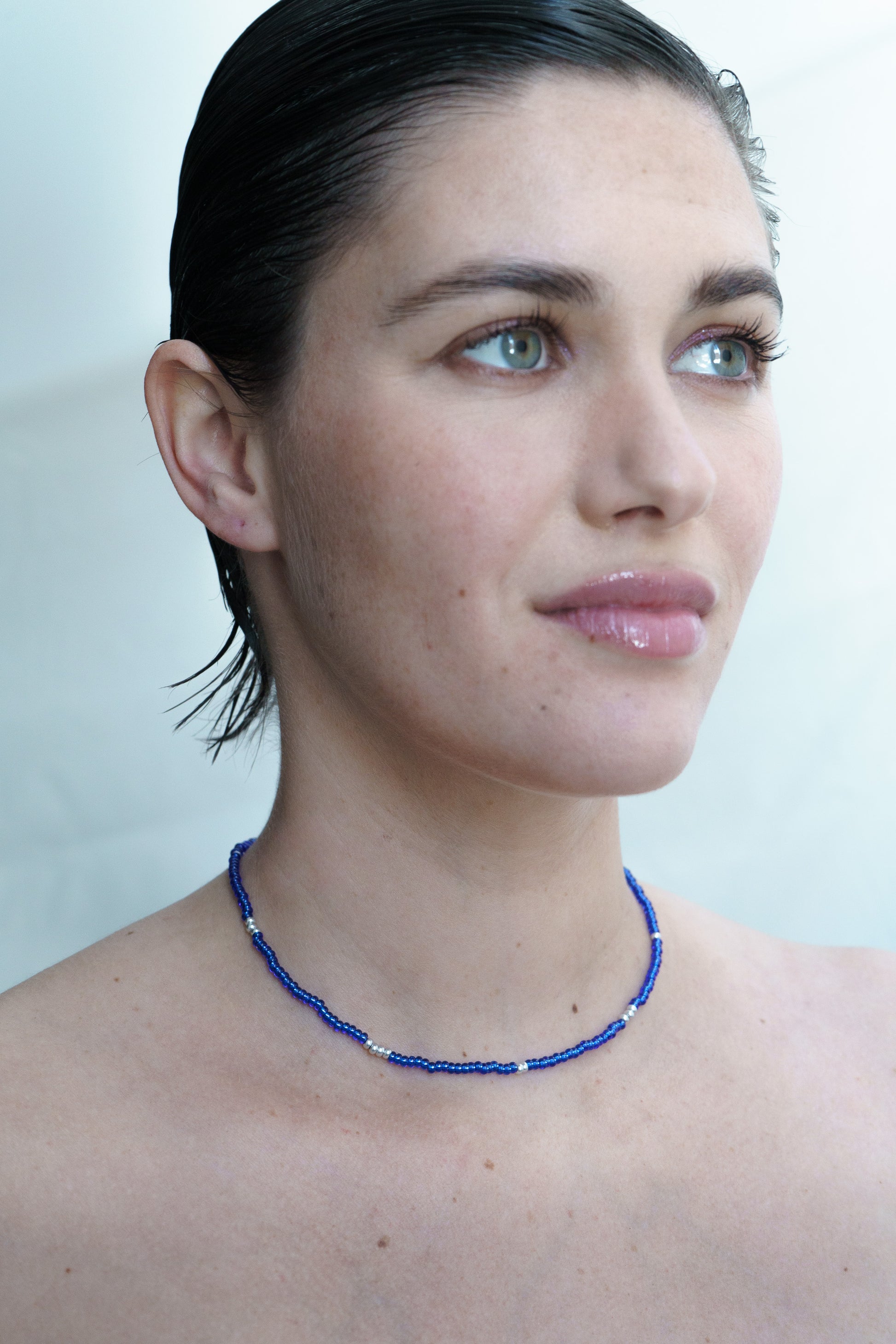 Our jewellery is made with glass beads, Fireline thread, and sterling silver chains and clasps — a little care goes a long way. Avoid water and perfume, and gently polish the silver if it darkens over time.
