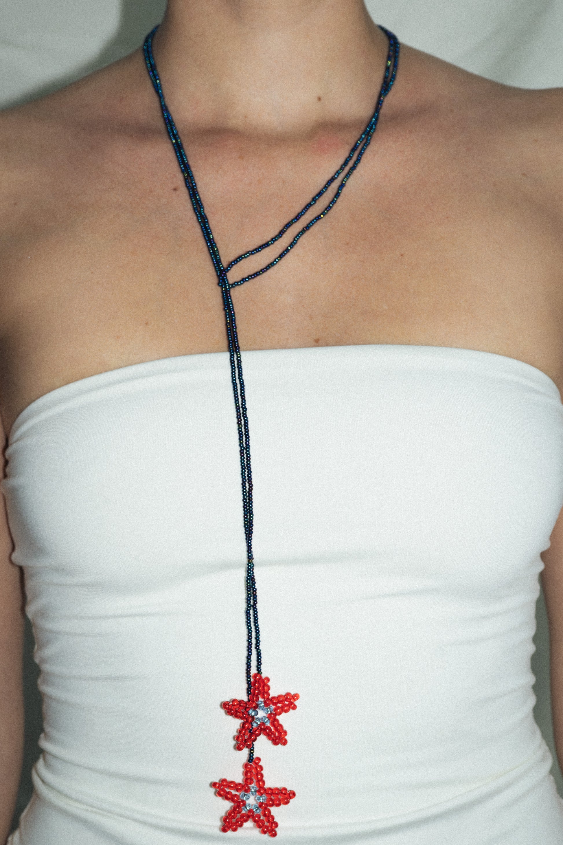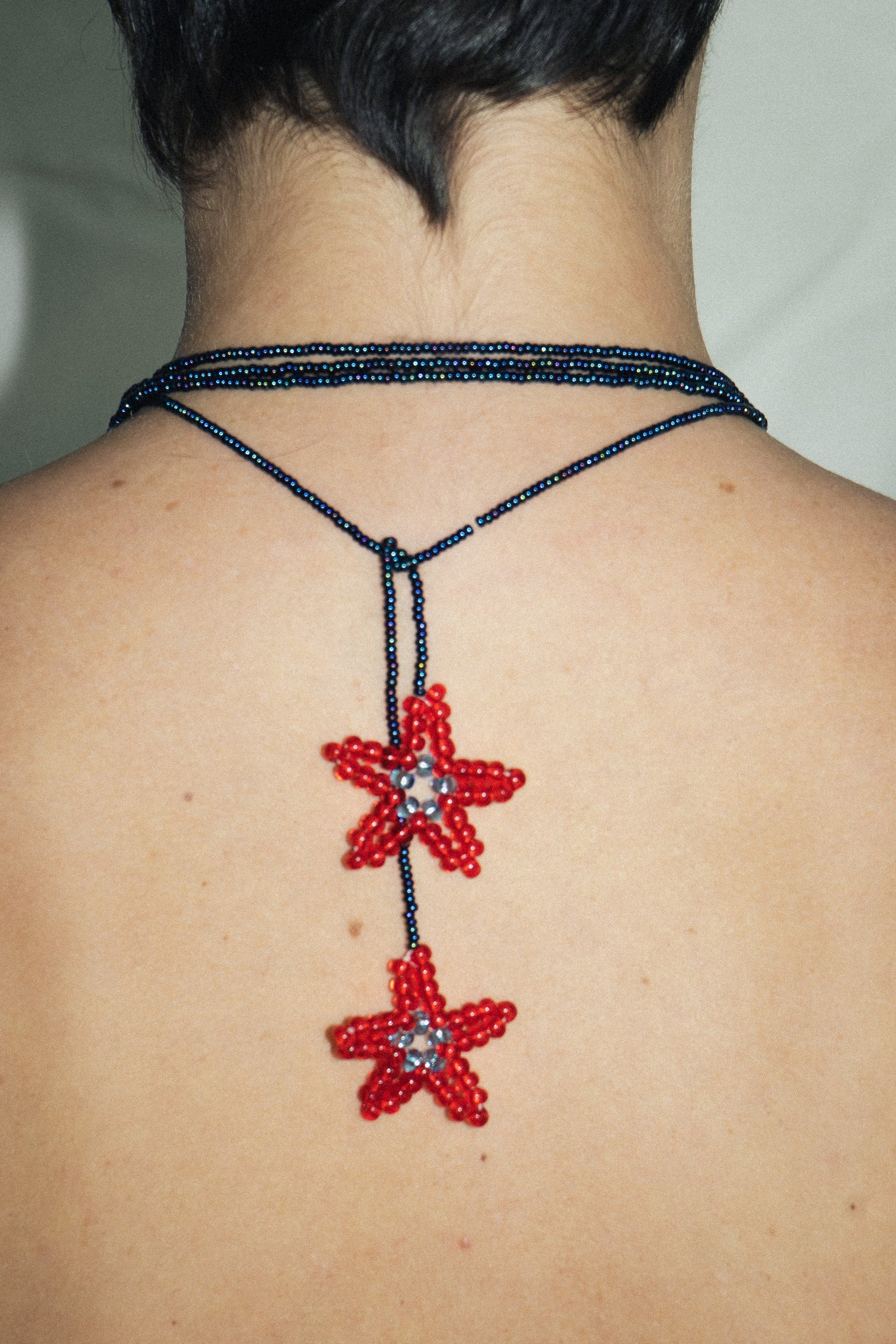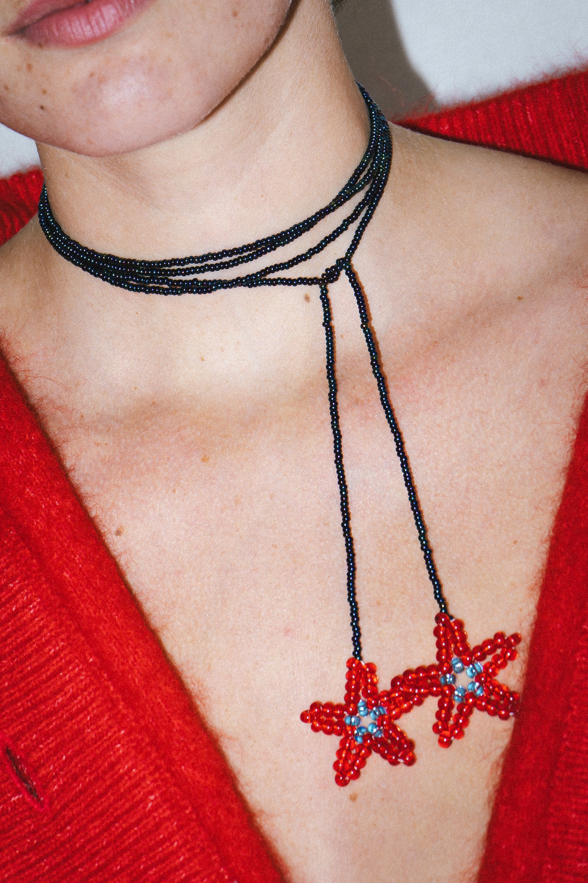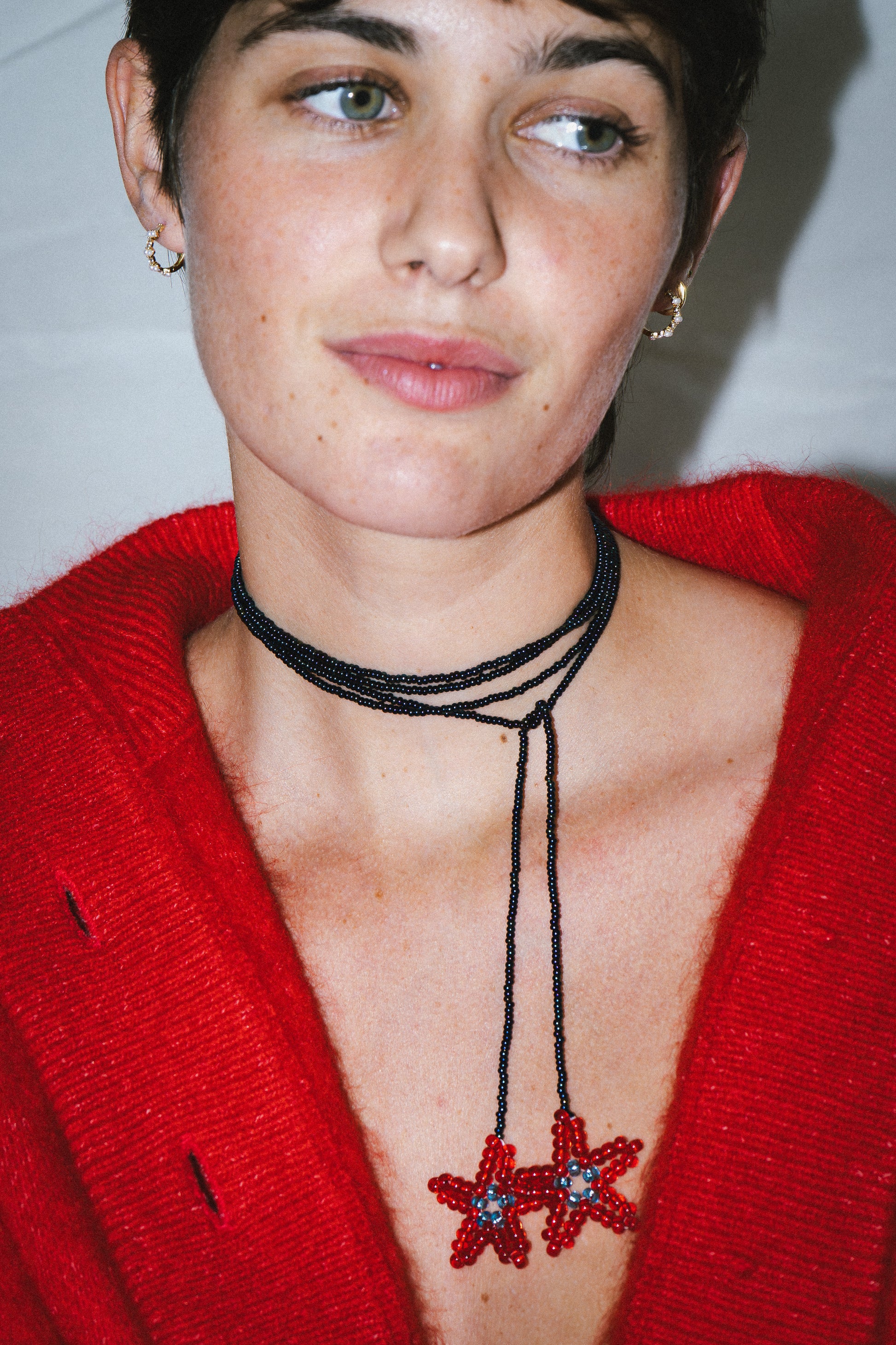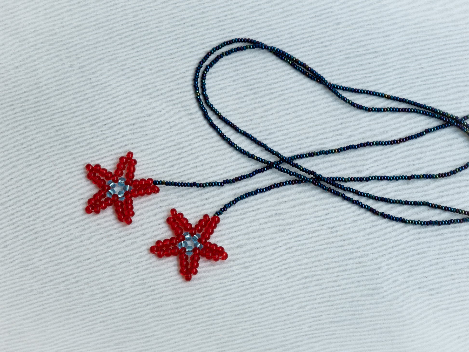 Our jewellery is made with glass beads, Fireline thread, and sterling silver chains and clasps — a little care goes a long way. Avoid water and perfume, and gently polish the silver if it darkens over time.