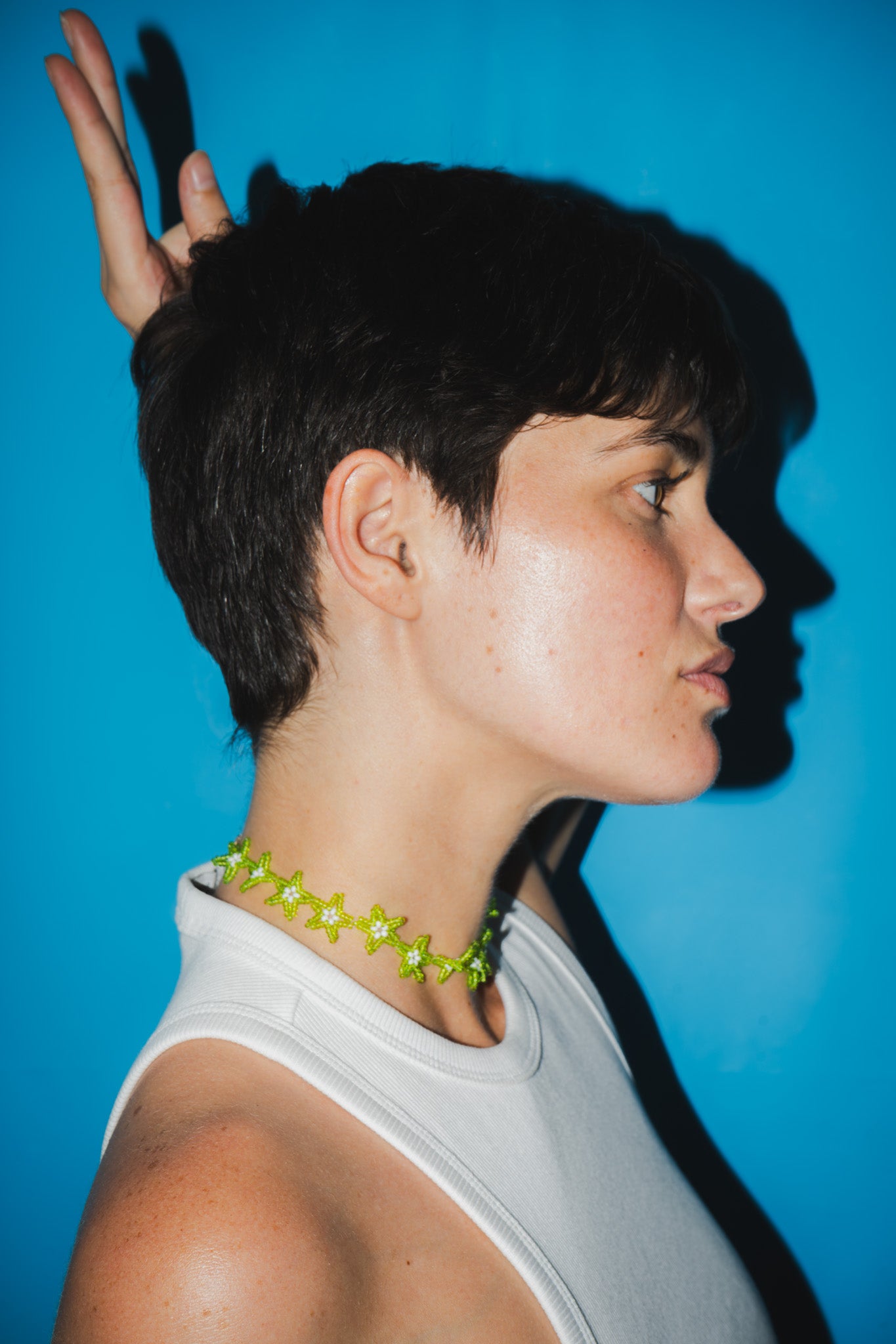 Our jewellery is made with glass beads, Fireline thread, and sterling silver chains and clasps — a little care goes a long way. Avoid water and perfume, and gently polish the silver if it darkens over time.