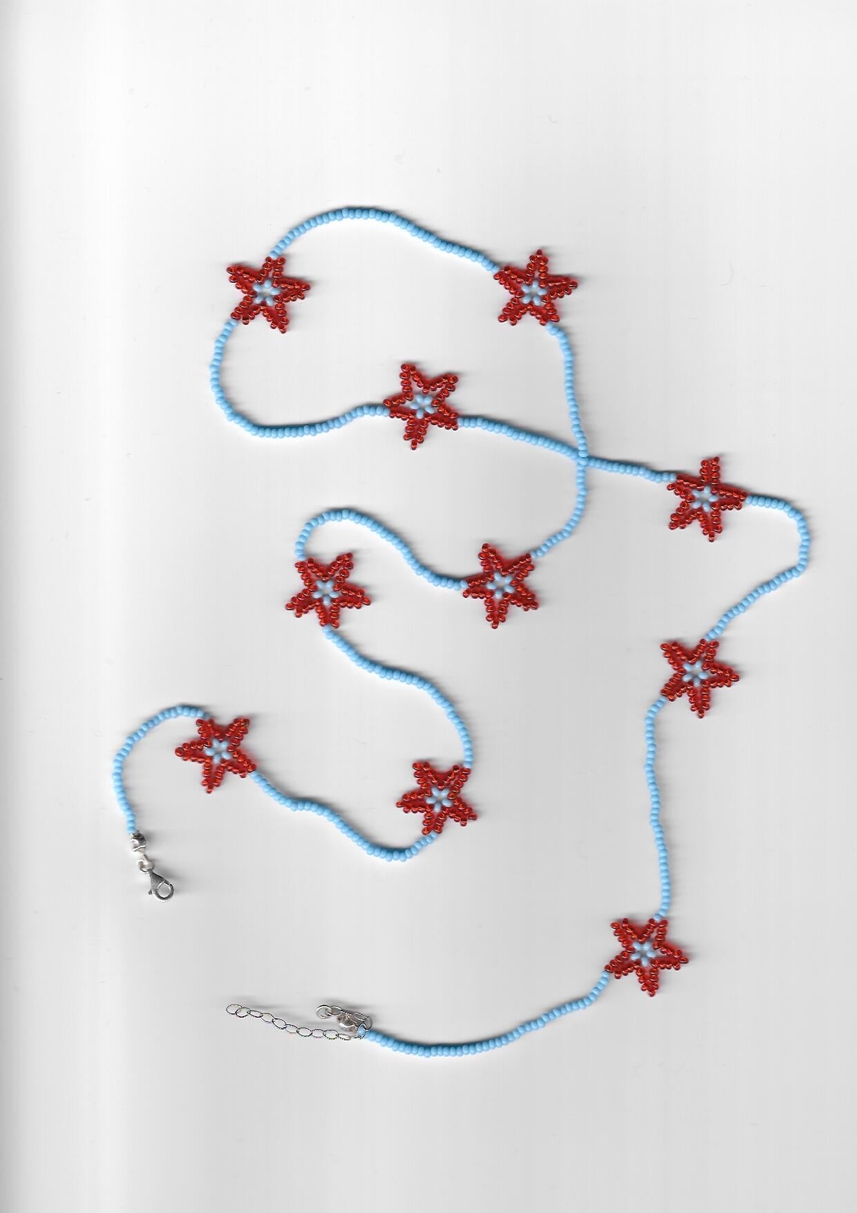 Our jewellery is made with glass beads, Fireline thread, and sterling silver chains and clasps — a little care goes a long way. Avoid water and perfume, and gently polish the silver if it darkens over time.