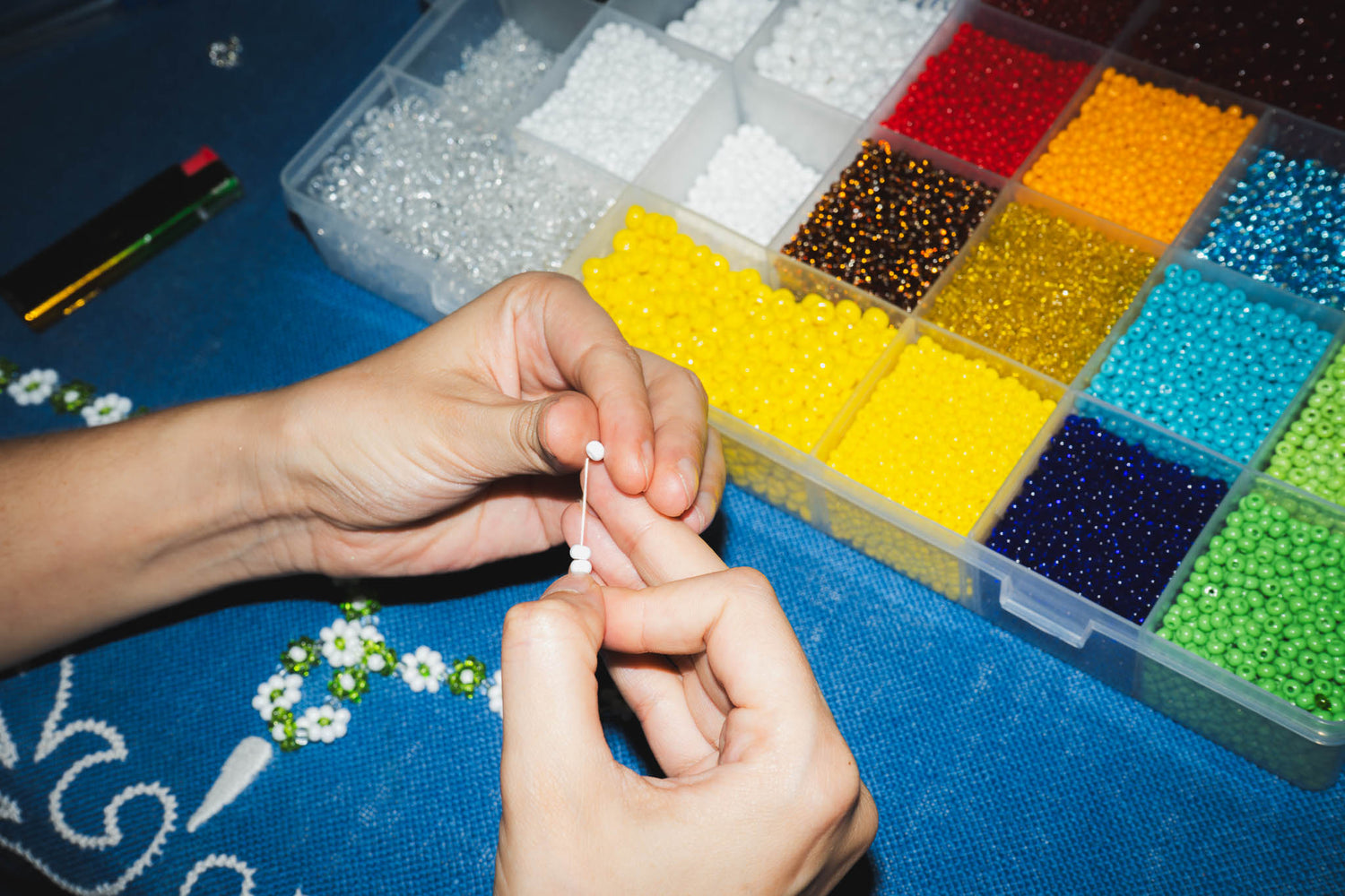 Our jewellery is made with glass beads, Fireline thread, and sterling silver chains and clasps — a little care goes a long way. Avoid water and perfume, and gently polish the silver if it darkens over time.