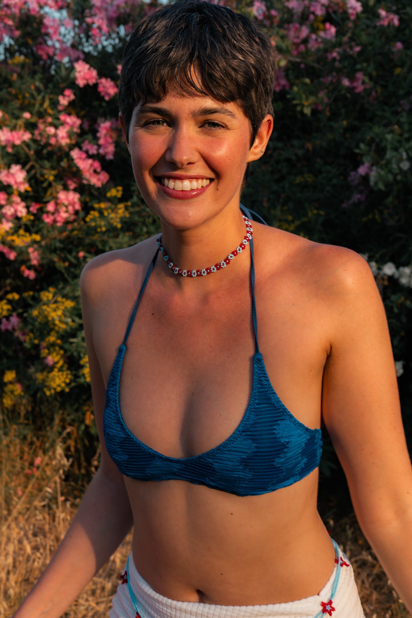 Our jewellery is made with glass beads, Fireline thread, and sterling silver chains and clasps — a little care goes a long way. Avoid water and perfume, and gently polish the silver if it darkens over time.
