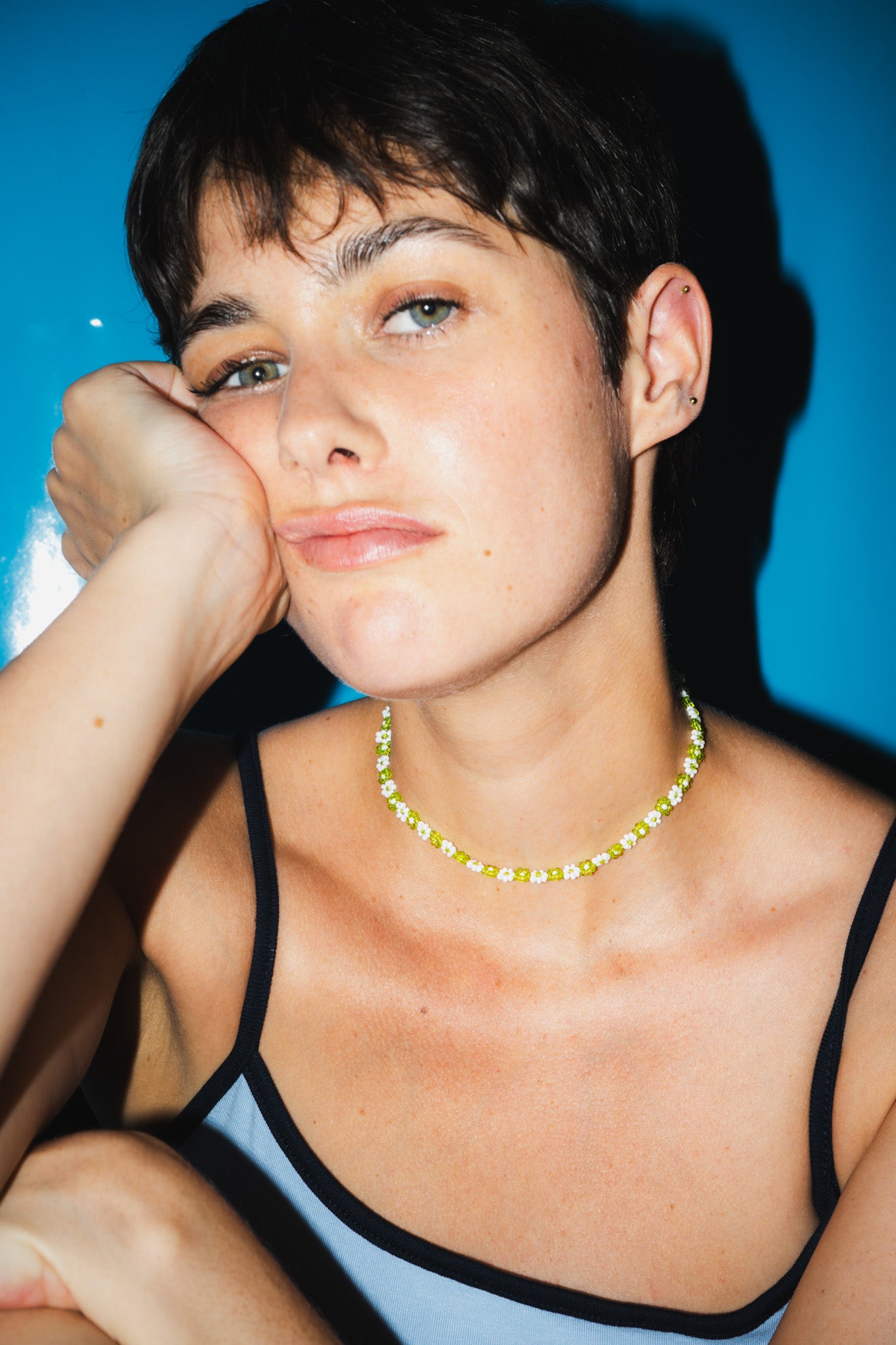 Our jewellery is made with glass beads, Fireline thread, and sterling silver chains and clasps — a little care goes a long way. Avoid water and perfume, and gently polish the silver if it darkens over time.