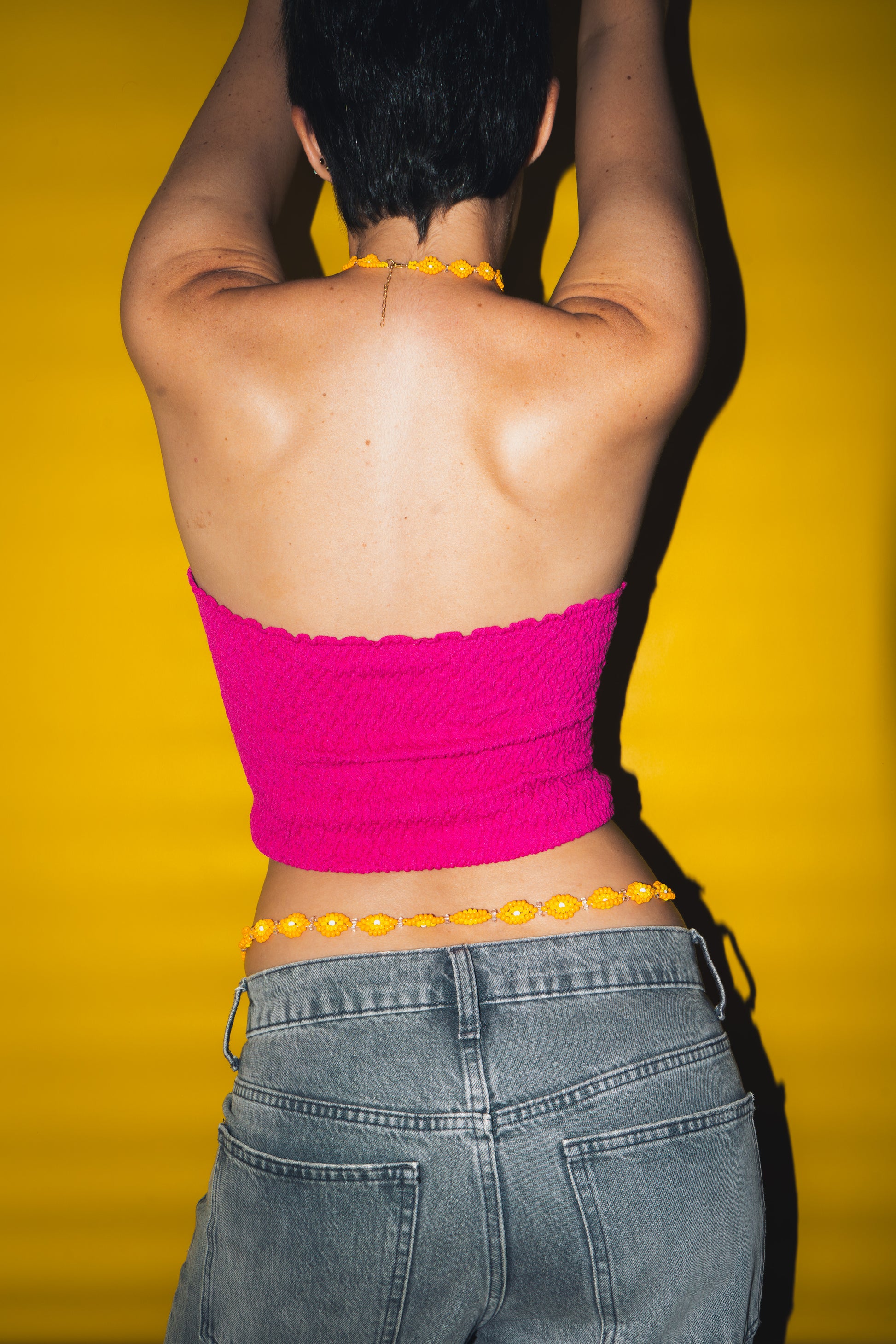 Handmade belly chain: Czech glass beads, 925 silver clasp, extension chain and Fireline thread.